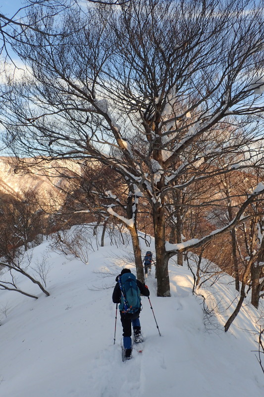 最初の内はミズナラ主体の林だが、やがてブナの森に変わる。一昨年の12月、まだ雪の積もっていない時に見た