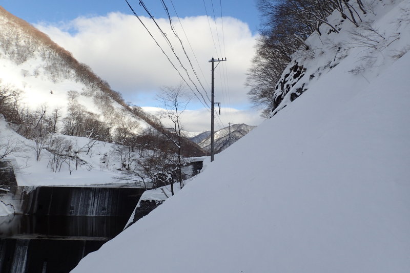 意外なことに林道は除雪されていた。これはラッキー、このまま神岳ダムまで行ければ楽勝である。