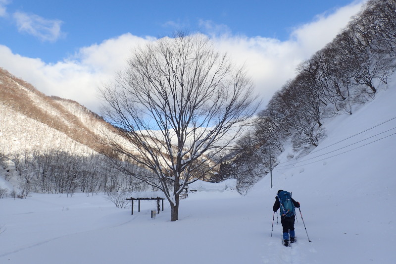 たっぷりの雪が積もった坂内川上。