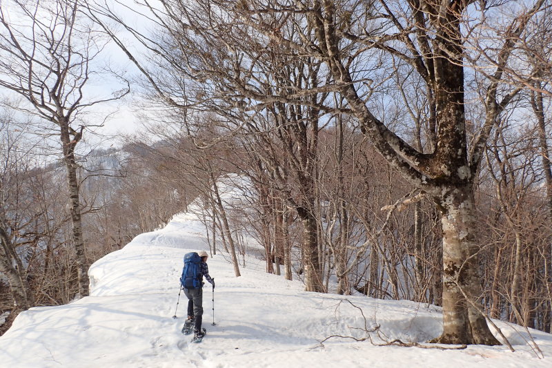 尾根の右側は大きなブナやミズナラが目立つ豊かな森になってきた。