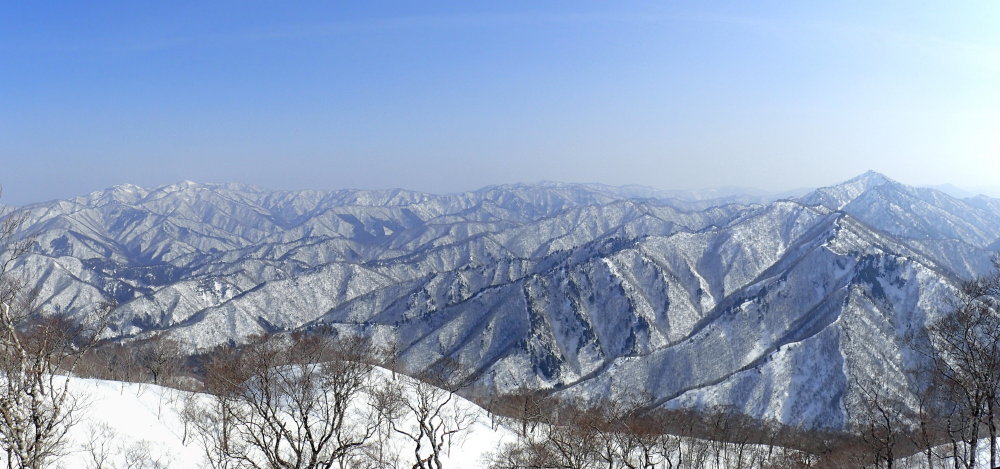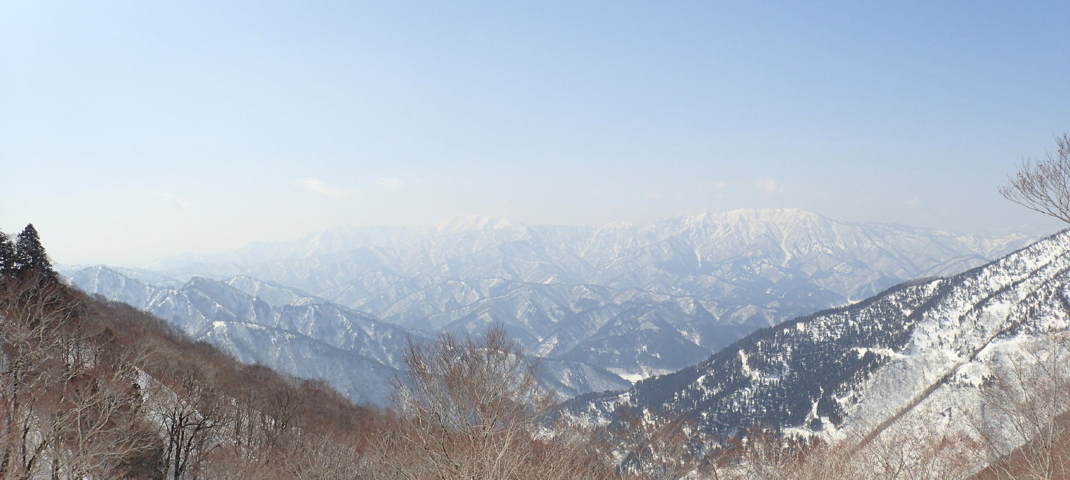れた。姥ヶ岳から能郷白山へと続く白い山並みである。特に能郷白山は白さが際立っている。