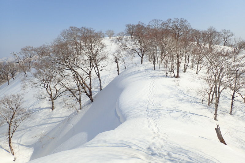 前回の記録を見ると、登り返しは右側からでした。苦労せずに登れたみたい。あのトレースに釣られてしまいました。
