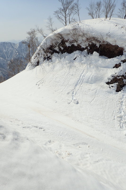 ちょっと前、枇杷倉山で通せんぼされ、踏んだ雪の下が宙でないことを確かめながらそろりそろりと越えました。