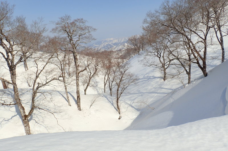 凛として立つブナの木々と、木々が雪面に描いた影が、地形の妙を際立たせていましたね。