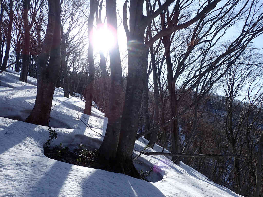 でしょー。でもよく考えたら、トンネル開通してから一度も登ってなかったですわ。 たしかに,ブナ林には凛とした雰囲気がありますね。とくに冬期には潅木が隠れてしまうので,すっきりとした雪山になります。