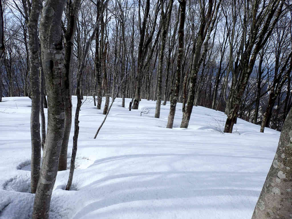 たしかに,ブナ林には凛とした雰囲気がありますね。とくに冬期には潅木が隠れてしまうので,すっきりとした雪山になります。