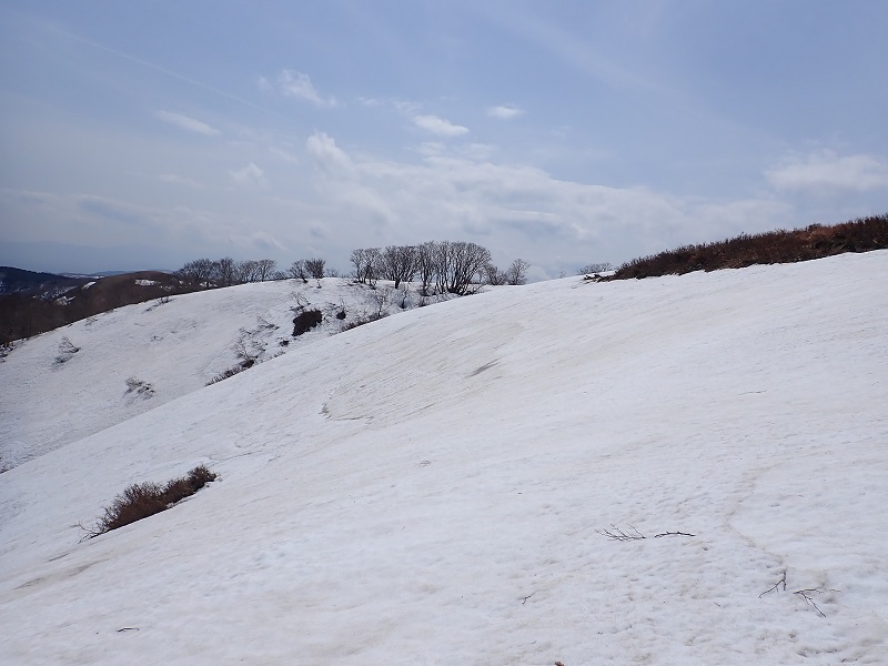 町から眺めると黒さが目立っていましたので、尾根上の雪は大分融けてしまったのだろうなと思っていました。