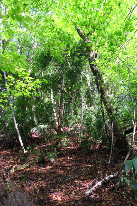 尾根には杣道が続いていた。広葉樹の箇所もあり暗さは感じない。