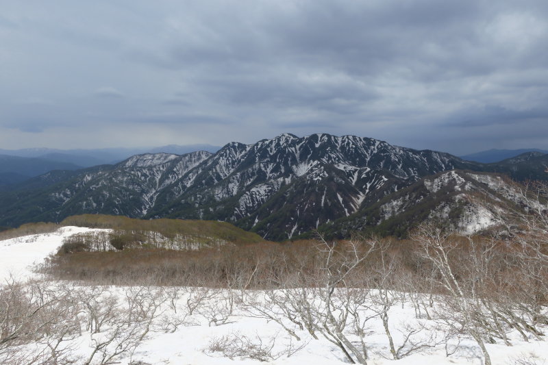 【奥越】味わい深し 新緑とまだら雪の赤兎山に遊んだ一日