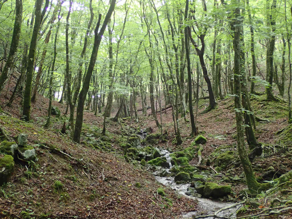 最後の滝が終わるといきなり癒しの源頭部になる。オオイタヤメイゲツの林。5年前はここで沢泊したっけ。もう一度こんな癒しの森で沢泊してみたいなあ。やっぱりこんな癒しの森は単独行に限る。