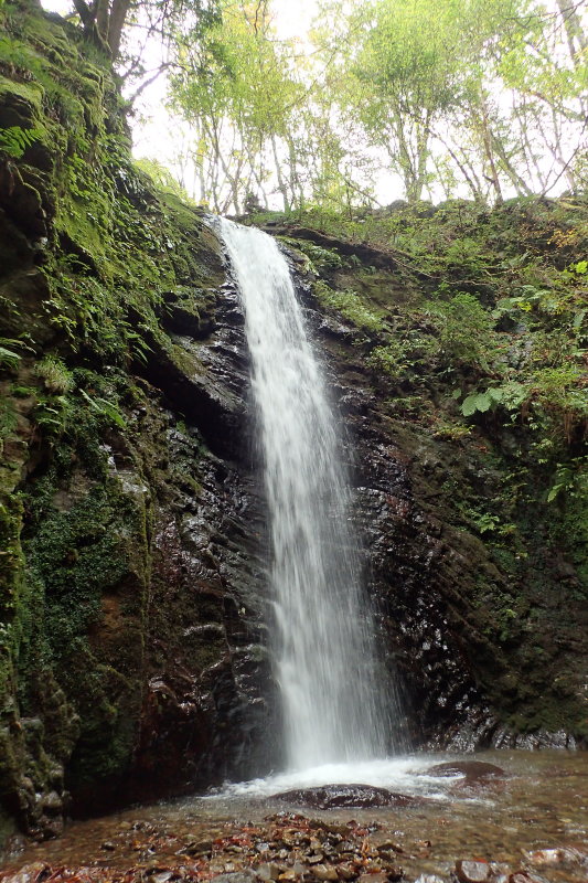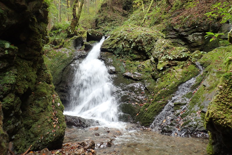 ふたつの小滝を越えて少し進むと、水音が大きくなり、滝があるなと思ったら、見事な滝が目の前に立ち憚りましたね。