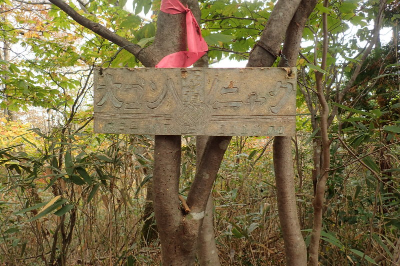 大ゴンニャクのピークには面白い標識がかかっていた。裏を見ると「またのご来峰をお待ちしております」と