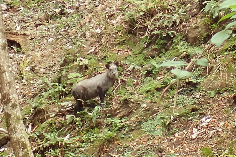 この谷では動物との出遭いも多く、イノシシ、シカ、サルと来て、最後にカモシカとも対面。残るはクマぐら