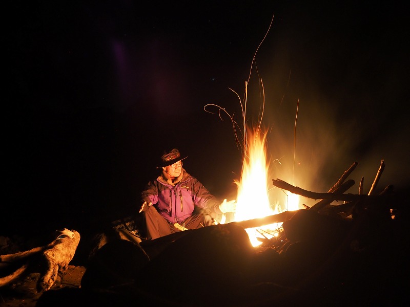 焚火と星空をアテにアワ缶と海川の水を焚火で湧かしたお湯で割ったヘネシーで至福の一夜を過ごさせて頂いた。いいですね~。まさに至福!!