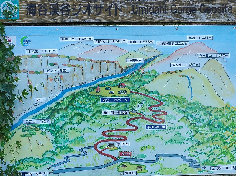 その山々の岩壁の間を急流となって流れるのが海川だ。
