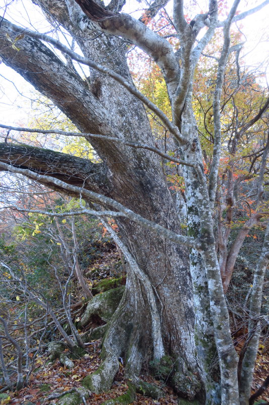 1132mピークを過ぎて、ついに目の前に現われたのは、5本の太い幹が足を踏ん張るように立つ、根上がりの巨大