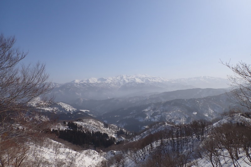 ここからは早くも白山の大展望が広がるが、今日は春霞がかかっているのかクッキリとした姿ではないのが
