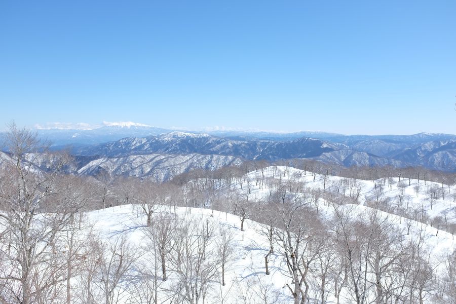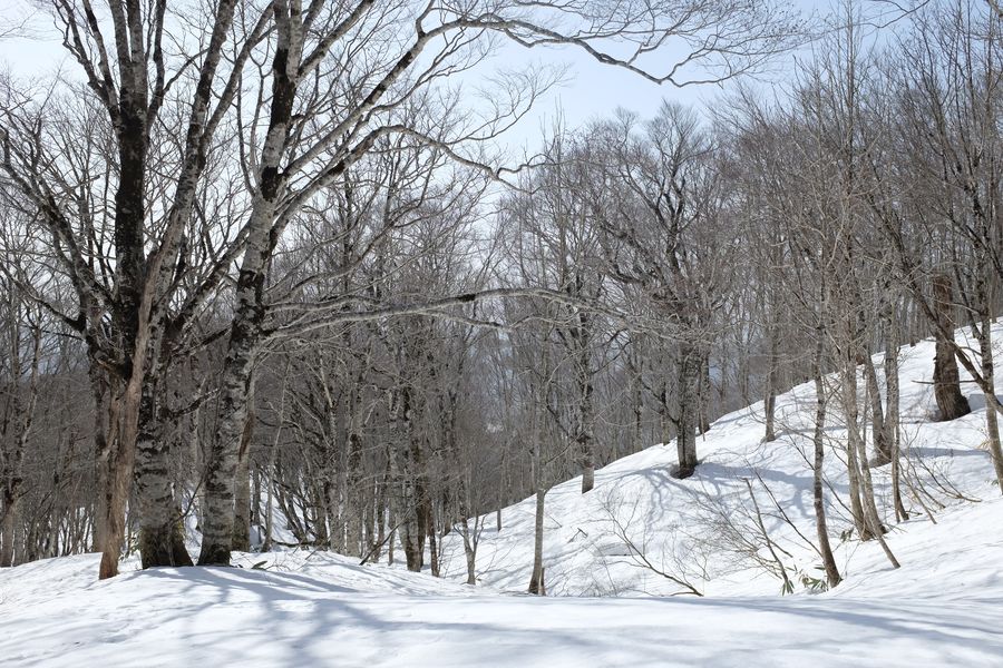 一日中、晴れ渡った空の下、残雪をまとったブナ林の中、新雪の上を歩くことができました。