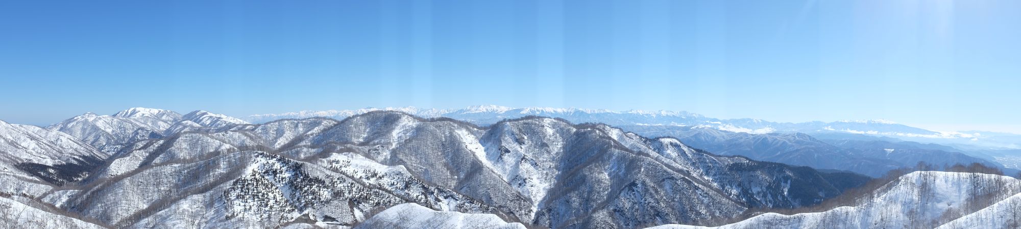 東には北アルプスの山並み、南東から南にかけては乗鞍岳や御嶽山。南西方面には白山もしっかり見えます。