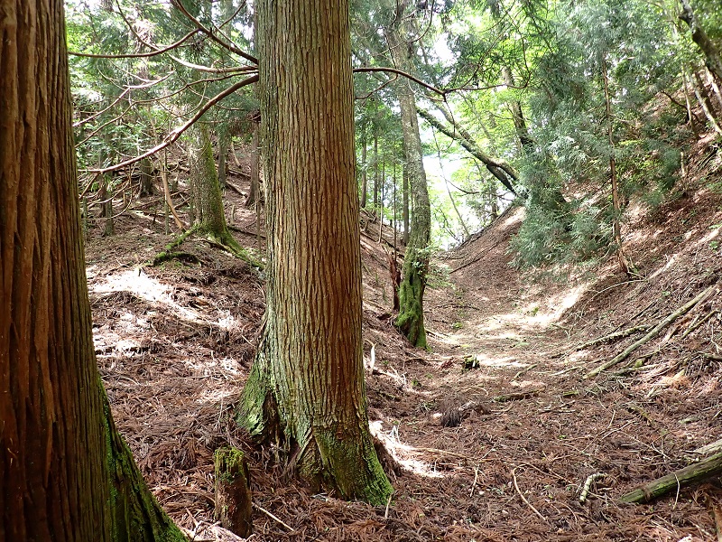 2カ所炭窯跡があり、酒米搬出の道として役割を終えた後のもののようだ。途中に石積みではなくコンクリートブロックを積み上げて補強してある箇所があった。昭和初期に御杖村の妙見さんへの信者が多く利用した時代のものだろうか。プラスチックが水抜きのパーツで使われているので、林道を奈良県までつなげる準備段階に整備された感じだ。林道がつながらなったおかげで、峠道は江戸時代の状態を残している。