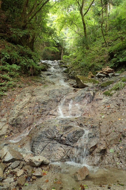 である。まわりは一面の手入れされた植林となり、谷芯は岩盤ではなく小川がチョロチョロと流れている。