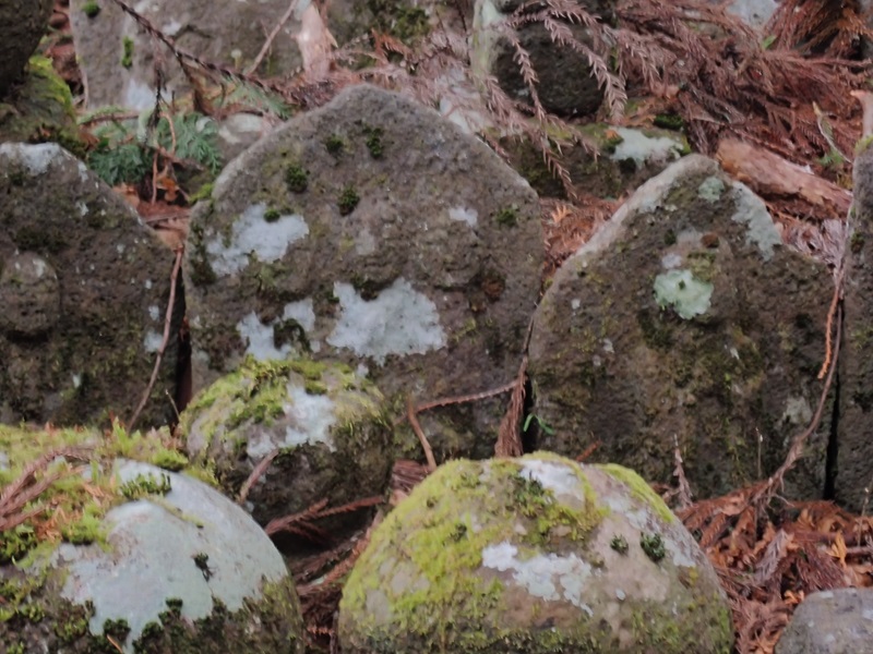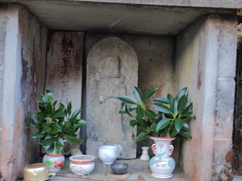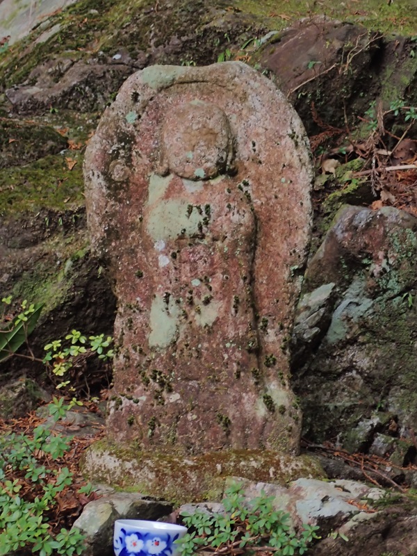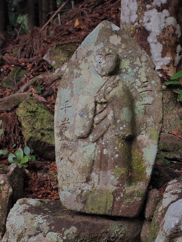しばらく下ると、大師堂があり弘法大師が祀られている。弘法大師は空海の事で真言密教を開き修験道を確立させた人物だ。他にも古い地蔵や石灯篭などが集められている。中でも気になったのは僧侶の石像に「三丁目」と刻まれた丁石だった。密教では俗塵を離れた山岳に寺院を建て、修学研鑽の場としていた。参道が長いことから、伽藍まで何丁、奥院まで何丁と道標を兼ねて目的地までの距離を示すものが丁石と呼ばれる石造物だ。空海が開いた高野山の町石道が有名ですね。丁石と町石と同じ意のようですが、なにが違うんでしょうか。