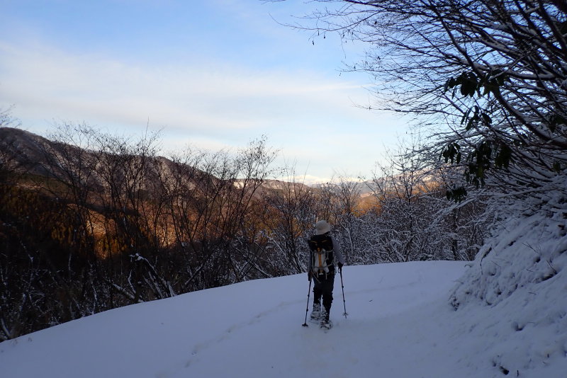 日の出から日没まで雪にスッポリ包まれた大満足の1日でしたね。このエリア、ぜひ足を向けてみたいもんです。もちろん、天候、積雪、体調などの条件を見てのことですが…。 危険なところがなく、葉の落ちた時期なら意外に大展望を得られるのでいいですよ。