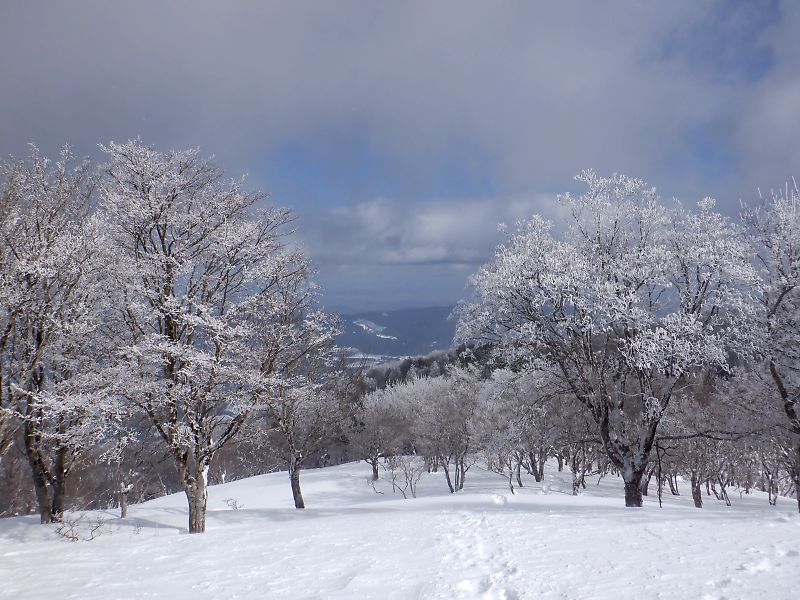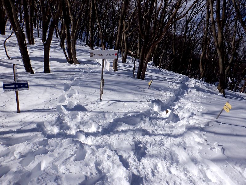 自分は踏み跡のない道で谷へ降りて「奥の平」に直接登りましたが、登りの雪の沈み込みに苦労して白船峠から3時間弱掛かりました…。