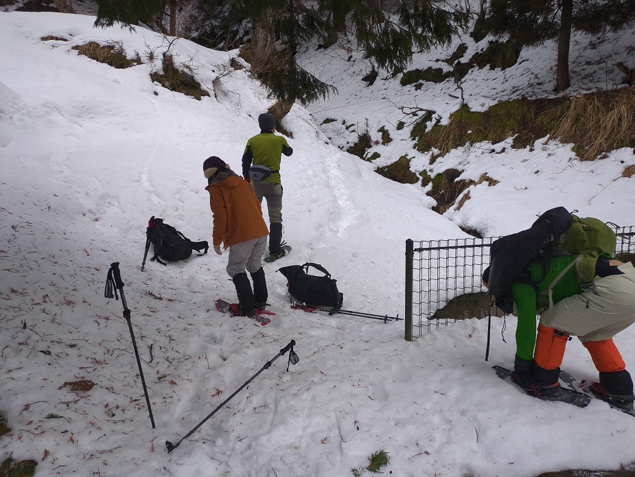 帰りは雨で湿った雪で滑らないように気を付けて下った。