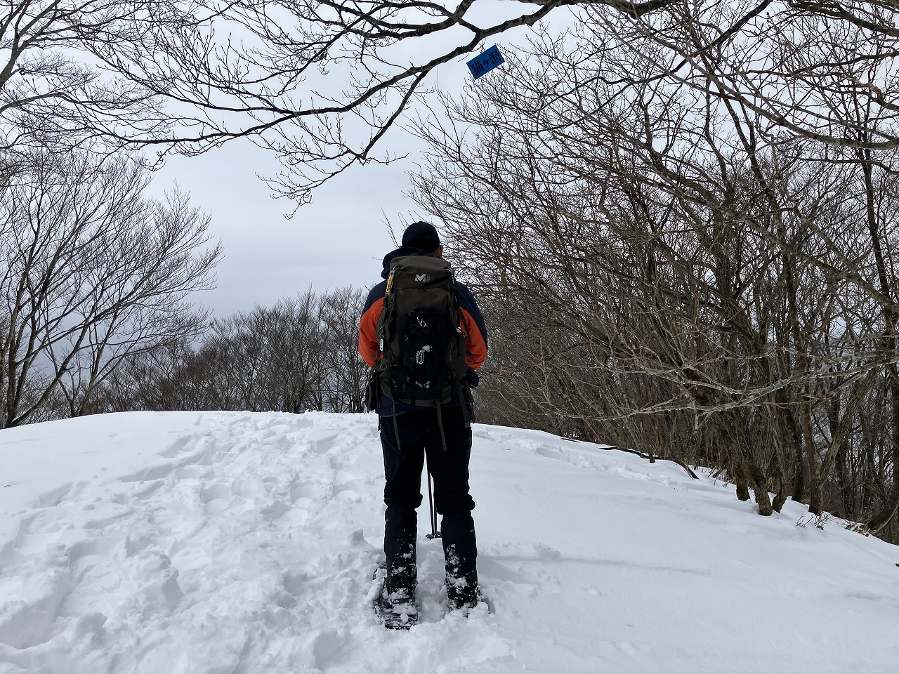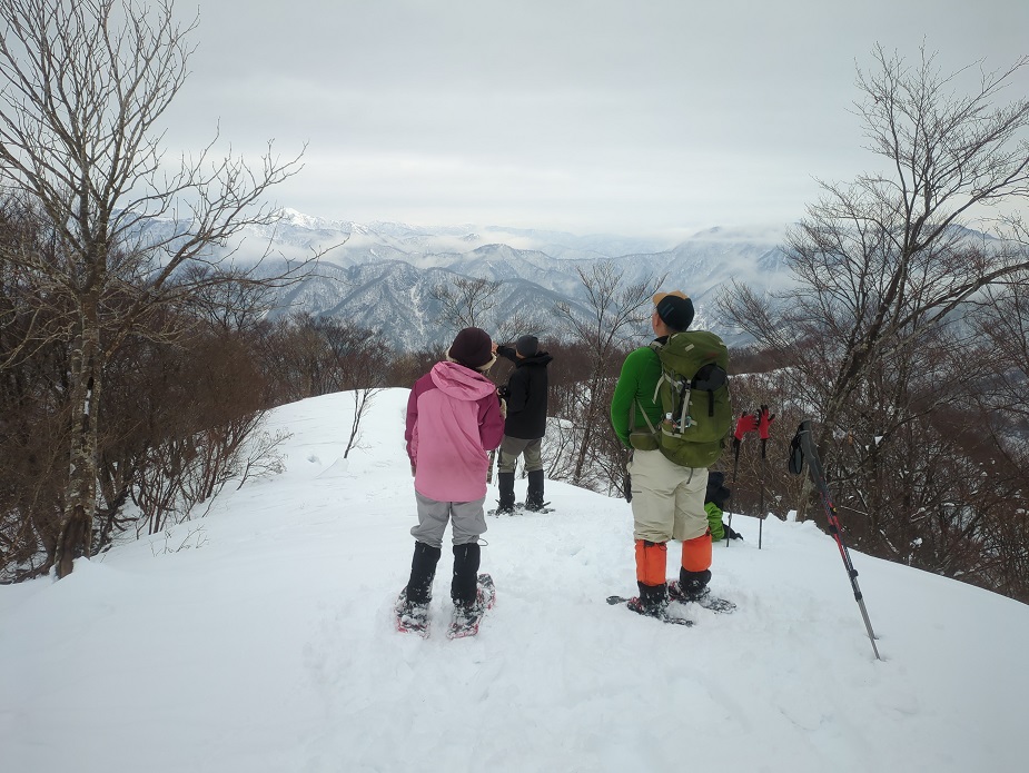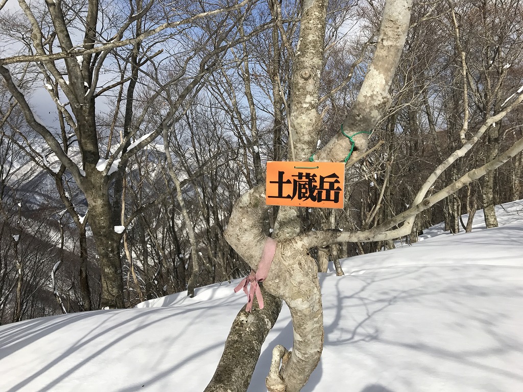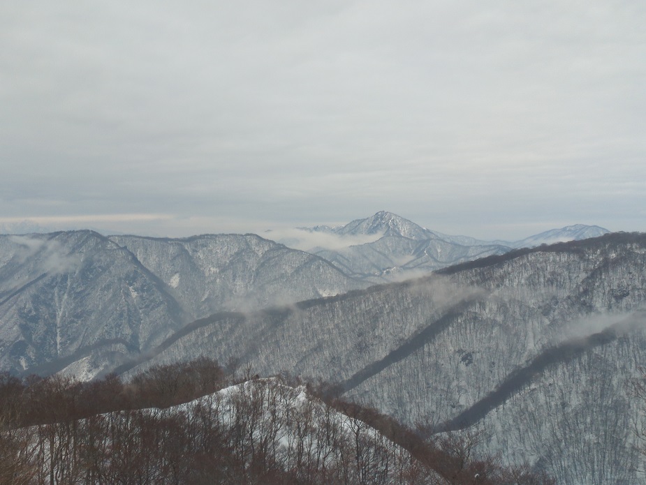 積雪が少ないので、左の木が邪魔になって、三国岳あたりがよく見えなかったですね。