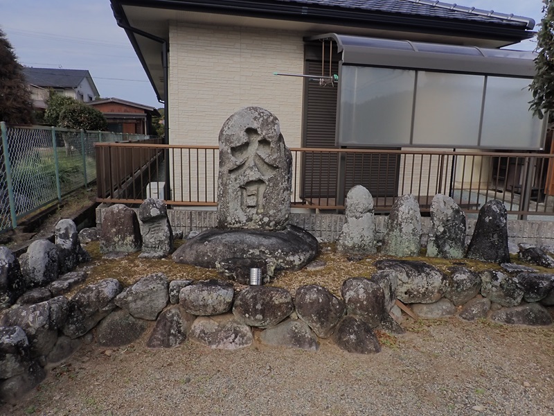帰りに丹生寺の大日如来の石碑を見に行った。この地も太陽の道の線上にあり、神聖な場所なのだろうが、現在は明治に集められた山の神や庚申塚と一緒に固められていた。