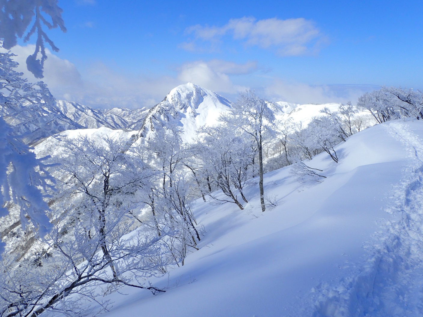 最高の雪山日和に遭遇されうらやましい限りです。