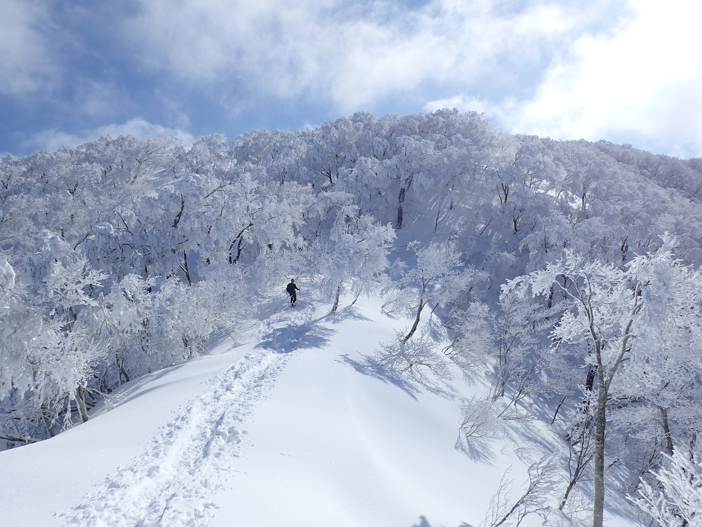 少しスリルはありましたが、急なところはジグザグに登りました。アイゼンに替えるのが面倒だったので。雪が降った後はスノーシューで行けましたか。