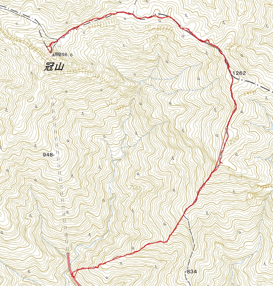 【 ルート 】8:05冠山トンネル南登山口→10:40冠ヶ峠(1262m)→11:40-12:00冠山→12:25-45稜線途中ランチ→13:30冠ヶ峠→15:00登山口