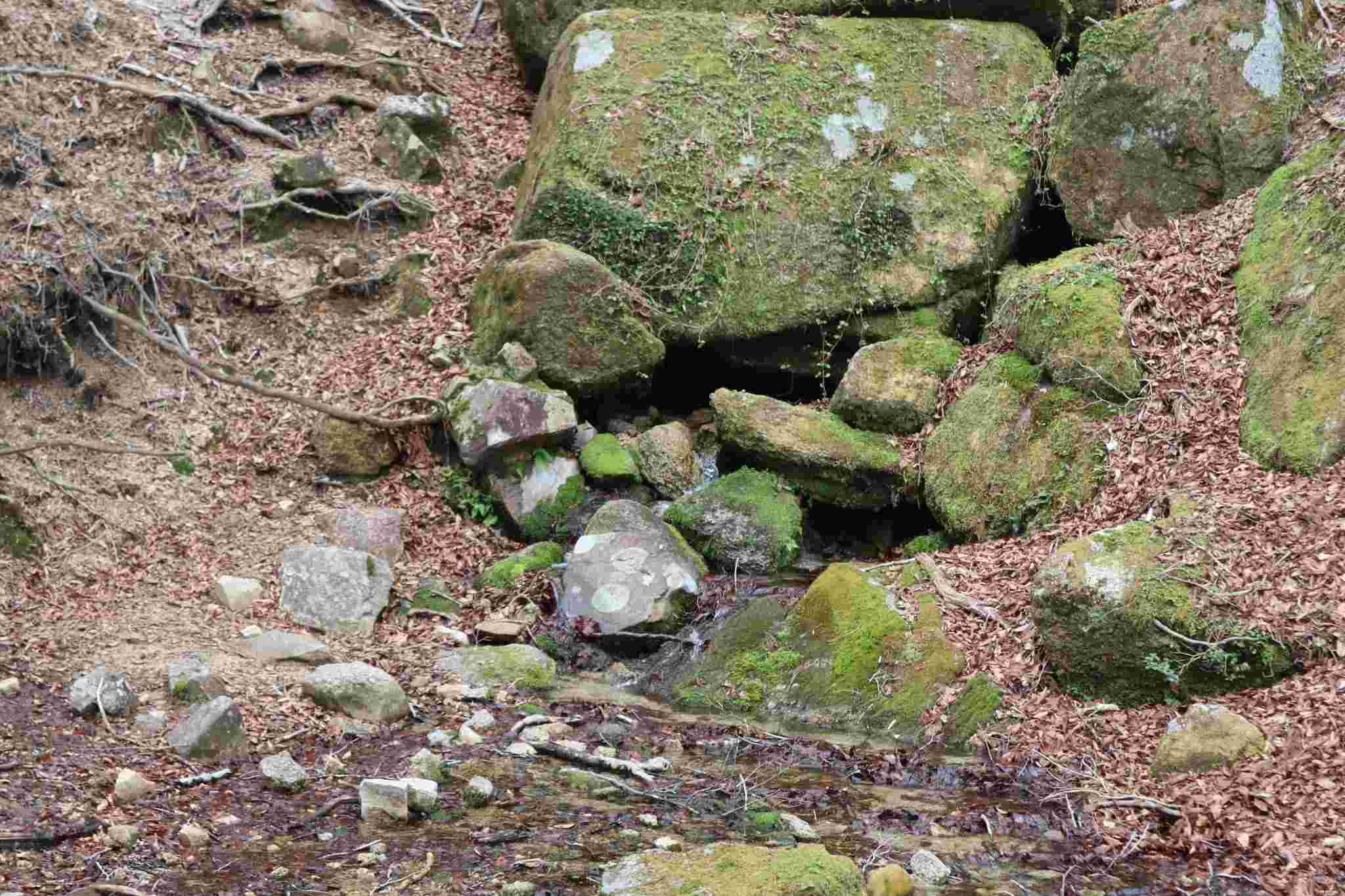 本当にね。ちょうど大岩の下に水の出口がありますね。
