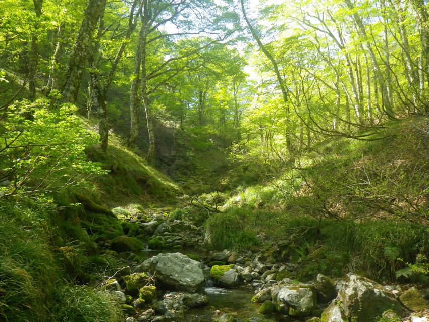 新緑のみずみずしさに感嘆の声が漏れる。時々コシアブラの新芽を頂く。