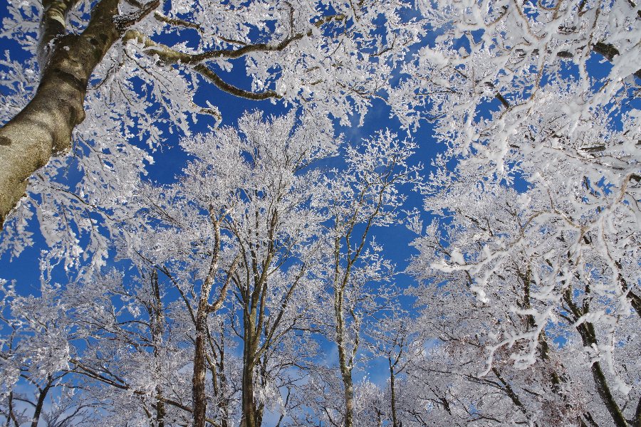 展望や青空は欲しいものの、一番育った状態の霧氷を見たいという、二律背反の難しさかな。