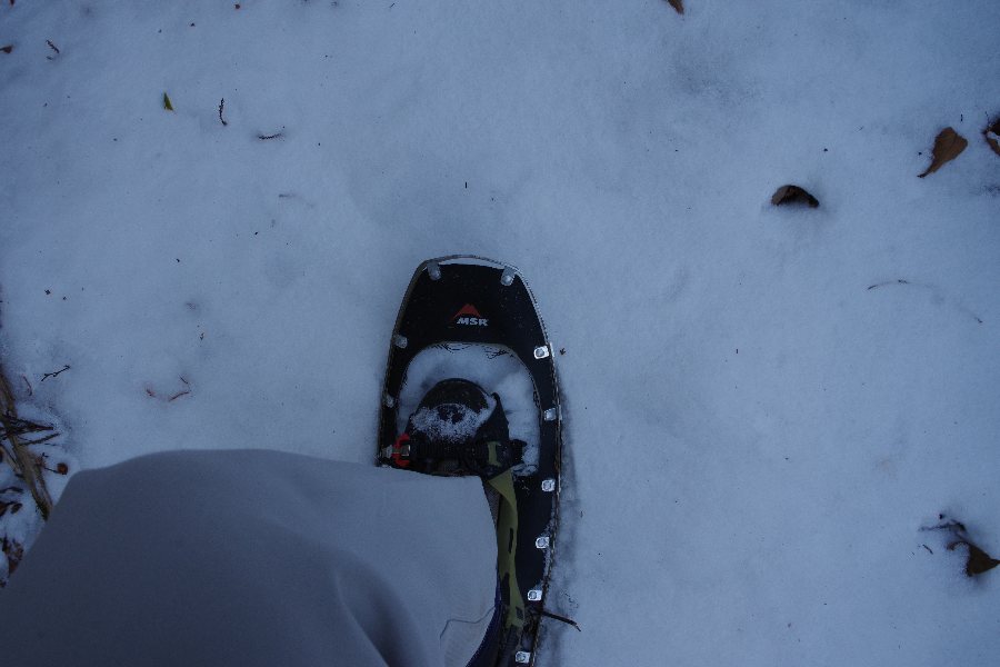 雪はといえば、ぎりぎりスノーシューを履いても非難されない程度には繋がっていて。