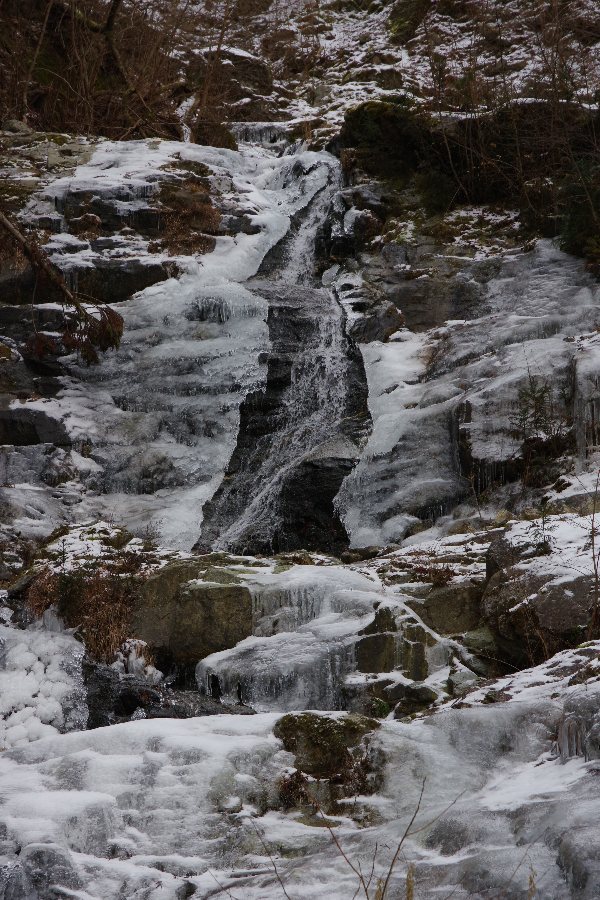 林道終点から山腹を経て谷に降りれば良かったのだろうが、左手に氷塊を見つけてしまう。