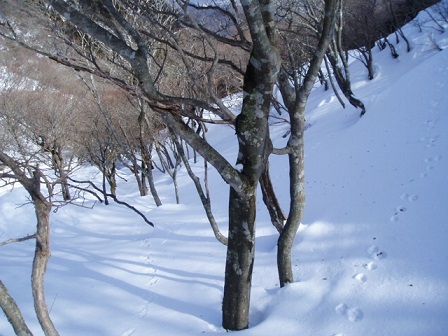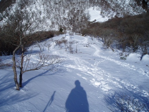無雪期だとその斜面はヤブで覆われて下りることが難しいのかもしれません