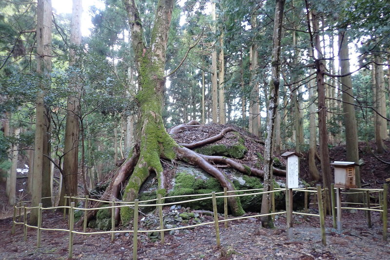>途中に黒龍大明神番衆大神があり、包み込むように根を張ったケヤキの奇木が抱える巨岩が信仰の対象になっているようだ。二拍手してその岩の周りを一周すれば願いごとが叶うという。