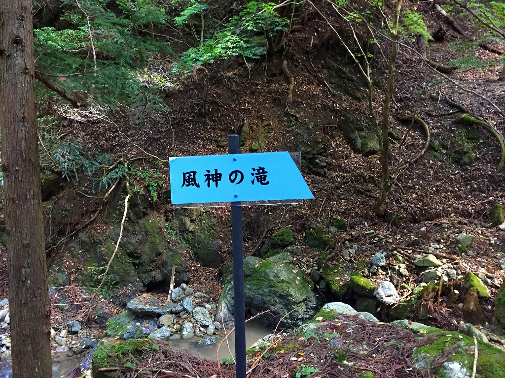 最後は谷へ下りてさわやかな流れのほとりを歩いて行くと、風神の滝という見応えのある滝が現れた。
