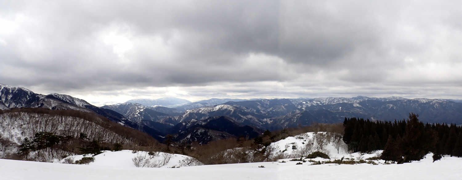 残念なのは日差しがなくなり、真っ白なはずの雪尾根がグレーになってしまったことだ。幸い雲が高いので遠望