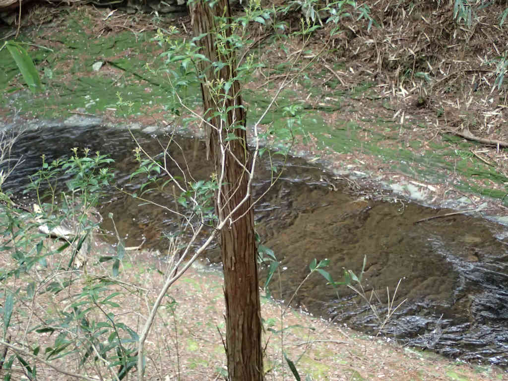 ここは宇野川の源流域だが,右側の川床は舗装道路のようなナメになっている。ここを再び歩いて見たいと思っていたのだが,このためだけにわざわざ沢靴を履いてくるのもどうかと思い,やめたのだった。今度また別の機会に歩きに来よう。ナメは100mほど続き,この下流に美しいナメ滝の布引滝25mがあるのだが,歩道からは見ることができない。