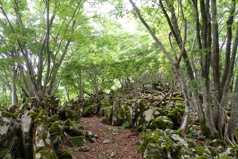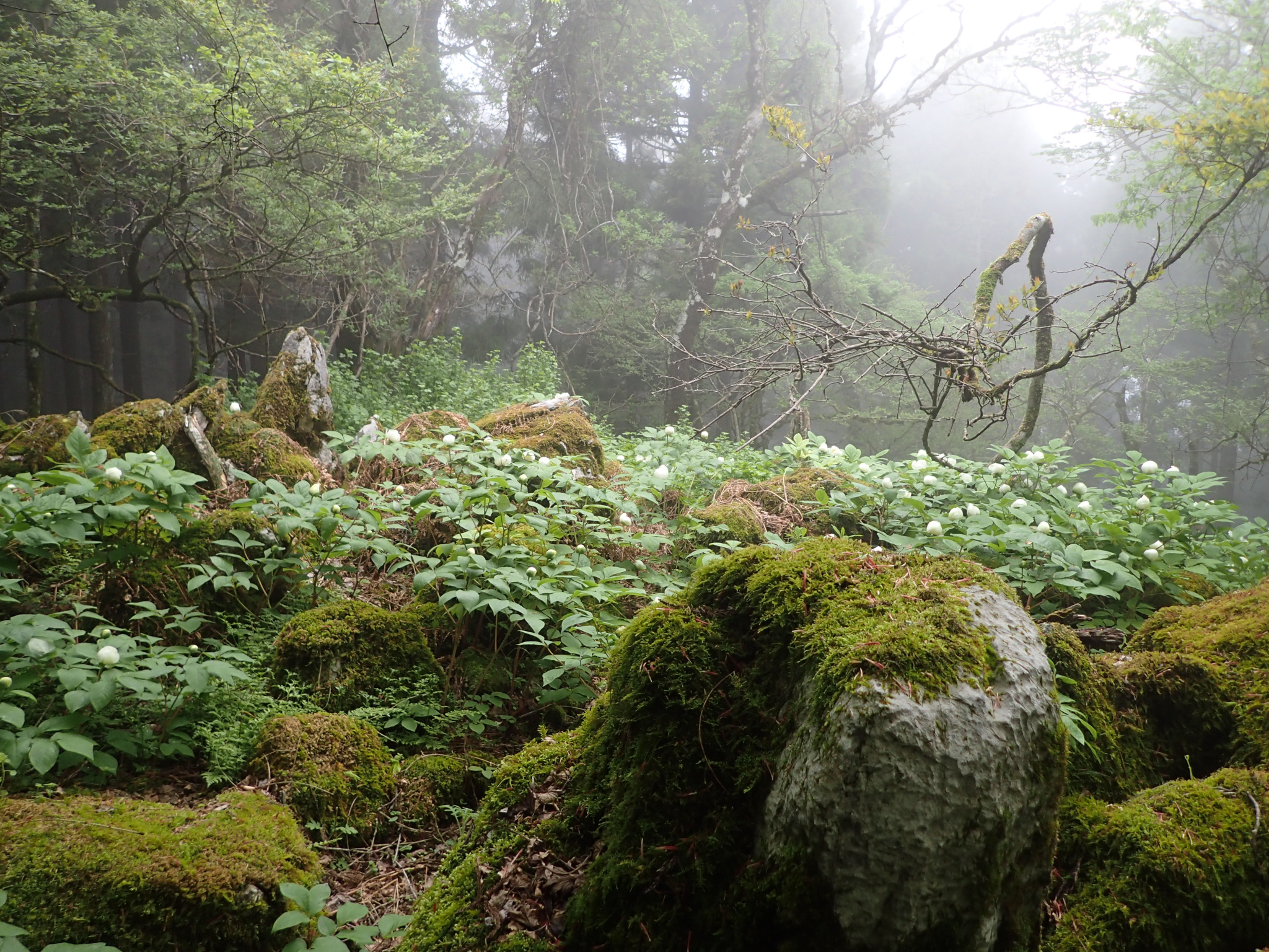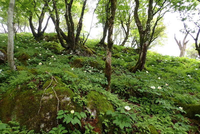 標高が800mを超え、そろそろ山上台地に近付いた頃になってもヤマシャクヤクは咲いていない。ちょっと不安