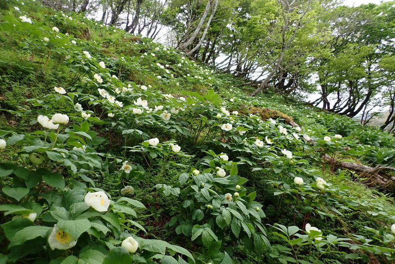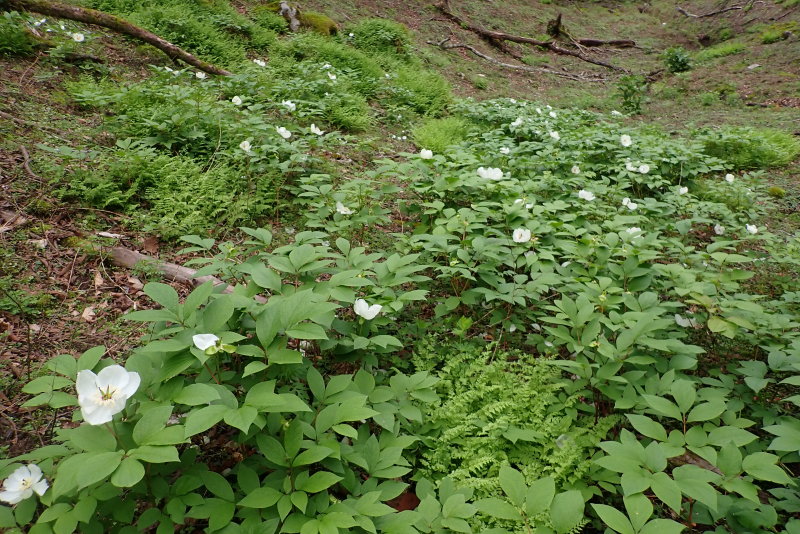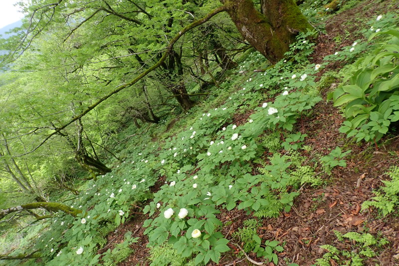 5年前の阿弥陀ヶ峰もなかなかのものだったが、ここは斜面一帯、ずっと下の方までヤマシャクヤクで埋め尽くさ