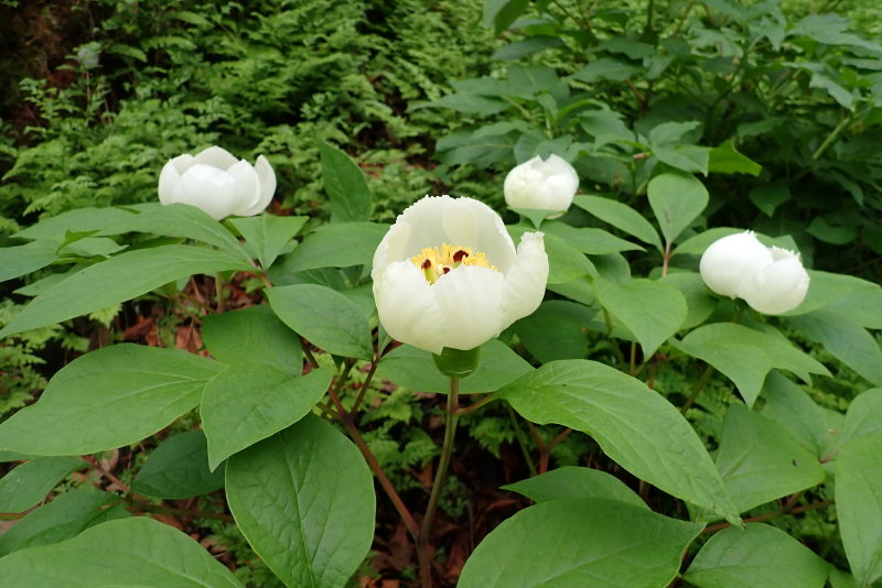 ヤマシャクヤクが現れ始めたが、すでに花は散っているようだ。標高の低いところでは先週ぐらいが見頃だっ