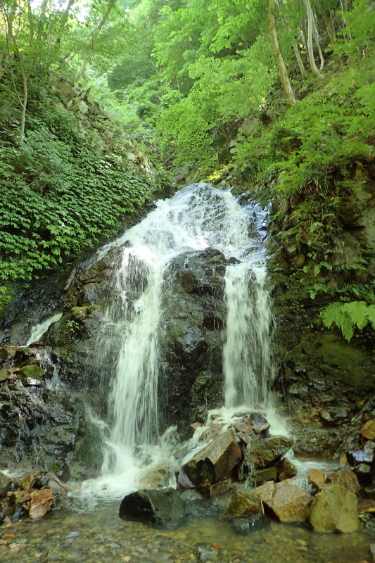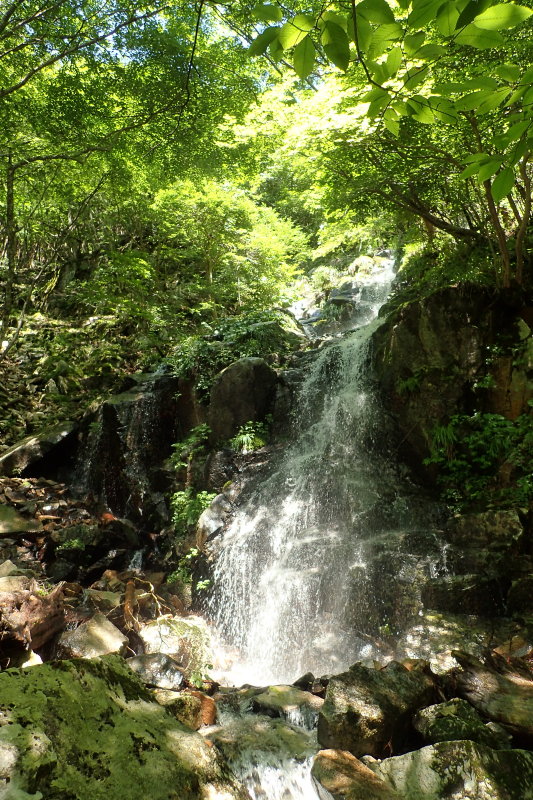 ようやく久しぶりに滝らしい滝が現れたと思ったら、これは左俣にかかる滝だった。進むのは那岐山頂に近い右俣である。