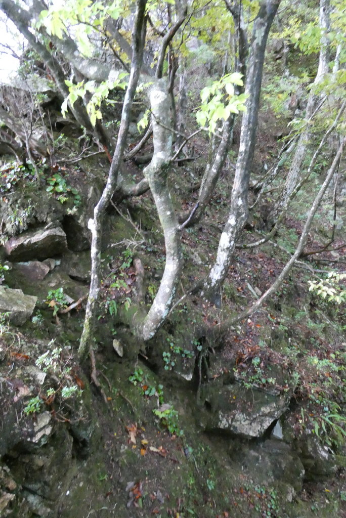 次に現れた岩壁は同様に右斜面を斜上して行くが、踏み跡と呼べるものもなく、慎重に一歩ずつ足を運ぶ。