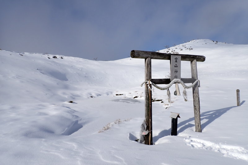 初めて霊仙にチャレンジしたのは2003年の暮れでした。笹峠を越え近江展望台までの急斜面を壺足のまま新雪を踏んで何度も滑りながら登ったのですが、岩ゴロゴロ、落とし穴あちこちの稜線に心が折れて撤退やむなしでした。スノーシューはもちろんアイゼンもカンジキも持ってない頃の無謀登山でした。(^_-)